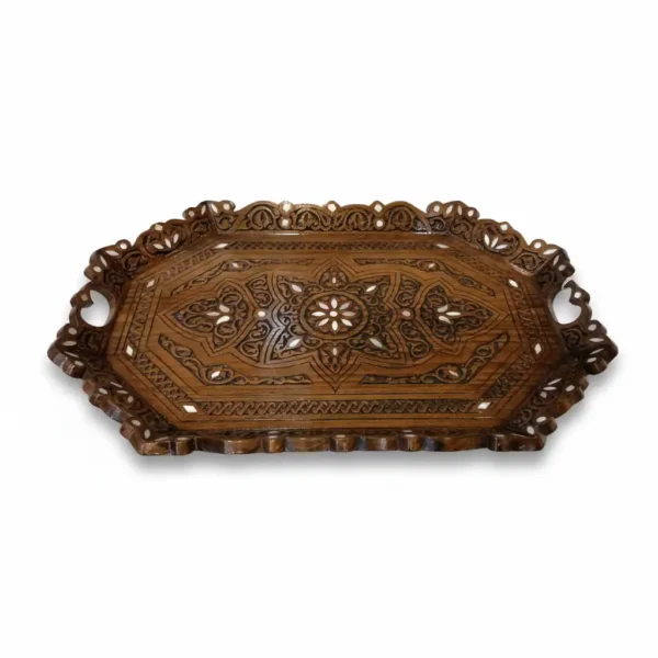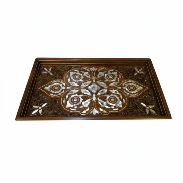 Premium Hand-Carved Wooden Tray with Mother-of-Pearl Floral Motif