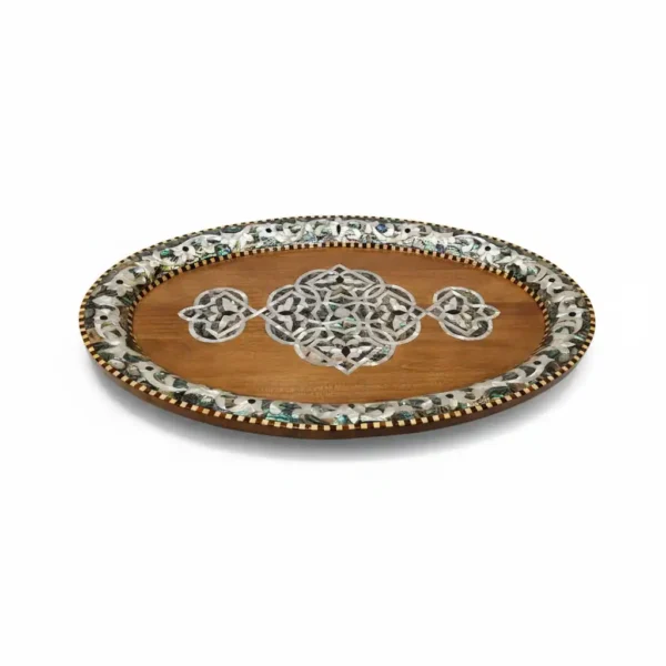 Luxury Oval Wooden Serving Tray with Mother-of-Pearl Inlay – Handmade Mosaic Art