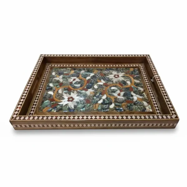 Mother-of-Pearl Mosaic Floral Serving Tray – Hand-Decorated Wooden Art Piece