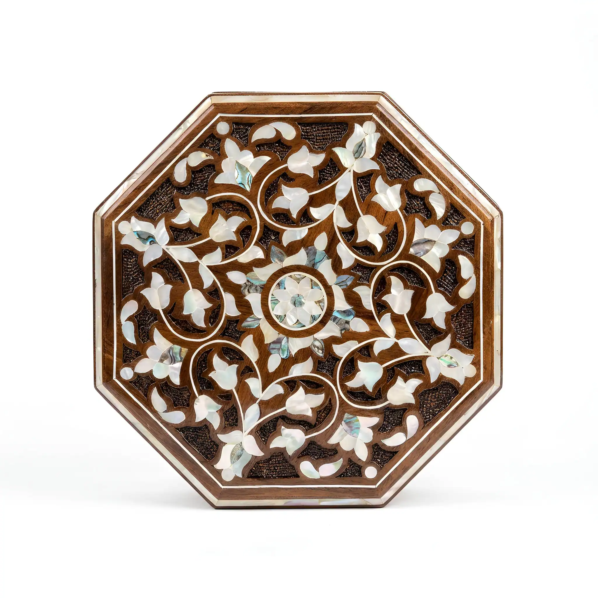 Handcrafted Octagon Mother-of-Pearl Inlaid Jewelry & Keepsake Box – Floral Carving Design