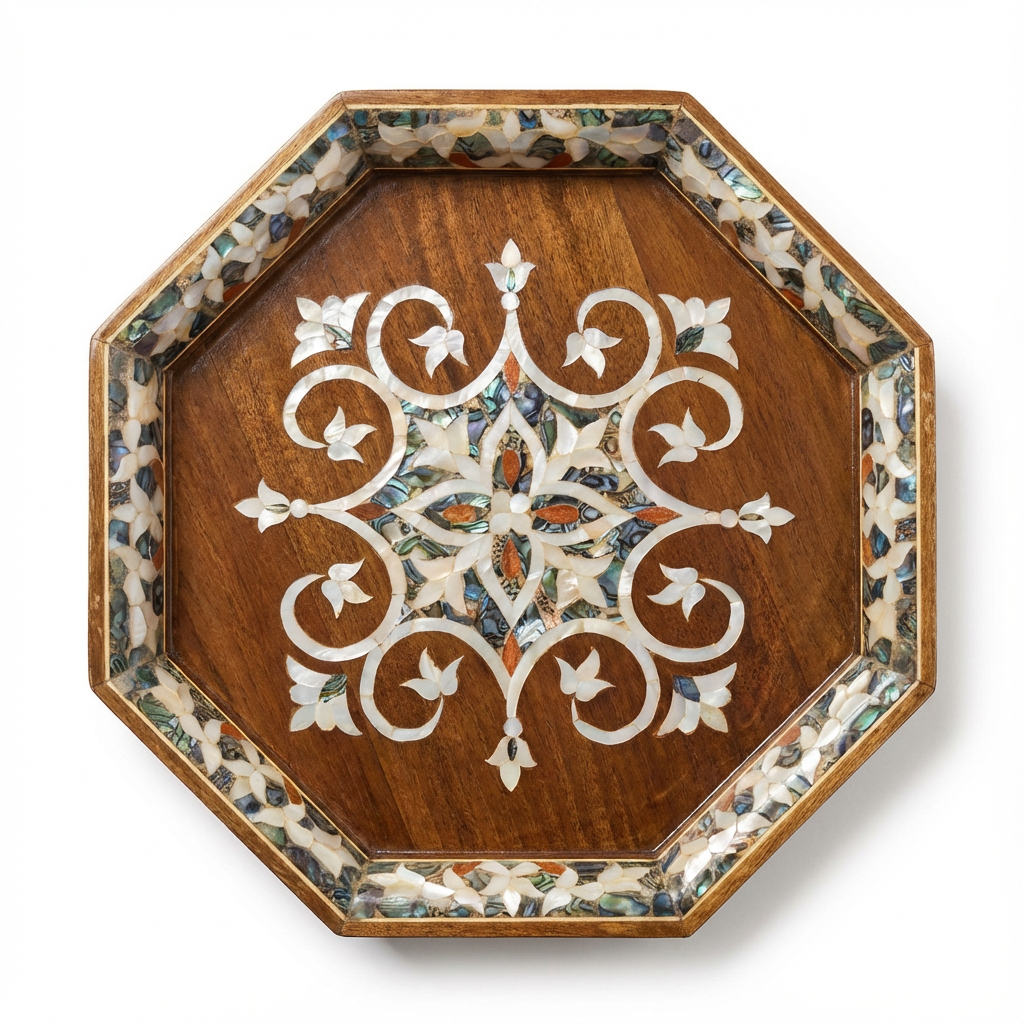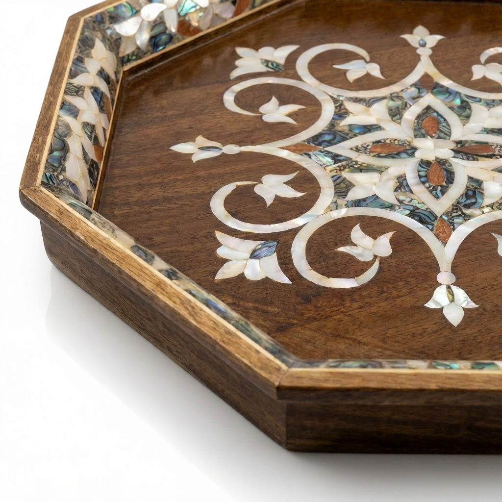 Handcrafted Octagonal Mother-of-Pearl Inlay Wooden Tray